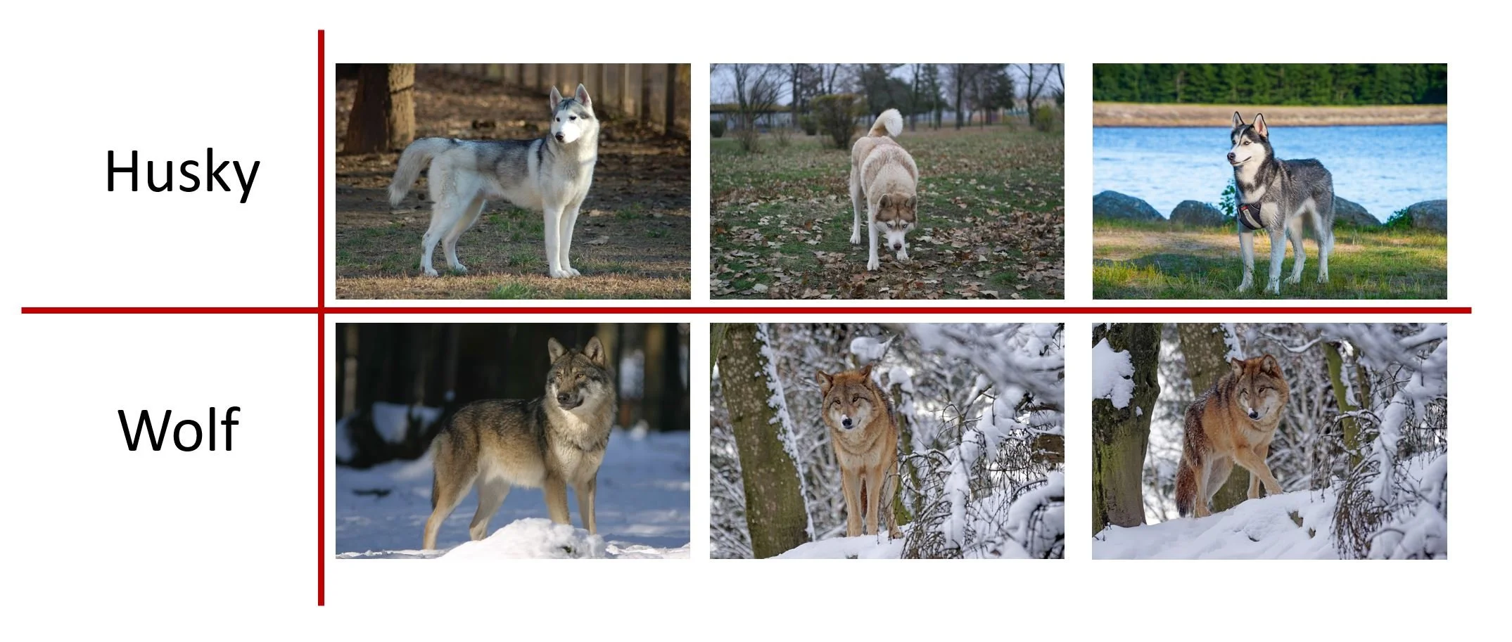 Now what is the solution to this? We need to make sure that the only constant in our images of both the Husky and the Wolf IS the Husky and the Wolf. Of course there are practical exceptions we can make. If we KNOW we will only see these animals outside in forest-like environments, then we don’t need to include images of them inside or in strange environments like the desert.