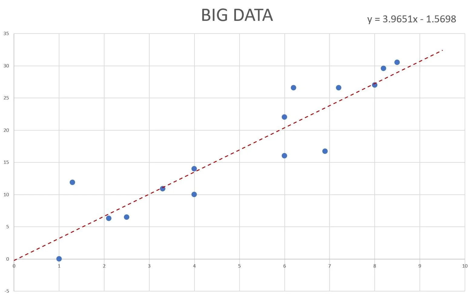 Now I’ve said a lot of technical terms there, so let's break it down to something simpler. A very simple machine learning task is basic line fitting. Many different fields and industries will use this technique, and you may have even been taught some method to perform it yourself. Now that method may not have been referred to as “Machine Learning”, but fundamentally that’s what it is (assuming it was performed by a computer and not by hand).